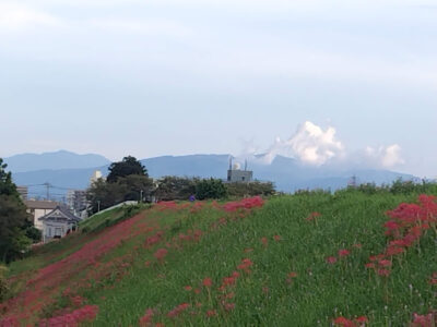 土手に咲く彼岸花は、見頃も終盤といった感じでしょうか。