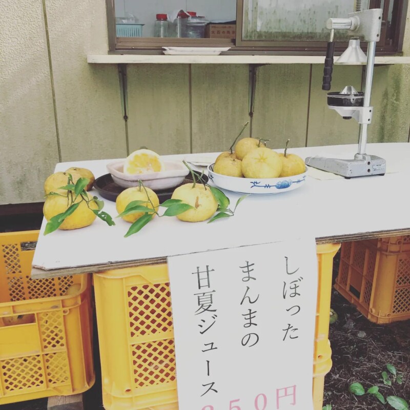 ブルーベリーかき氷、絞ったまんまの甘夏ジュースもどうぞ!