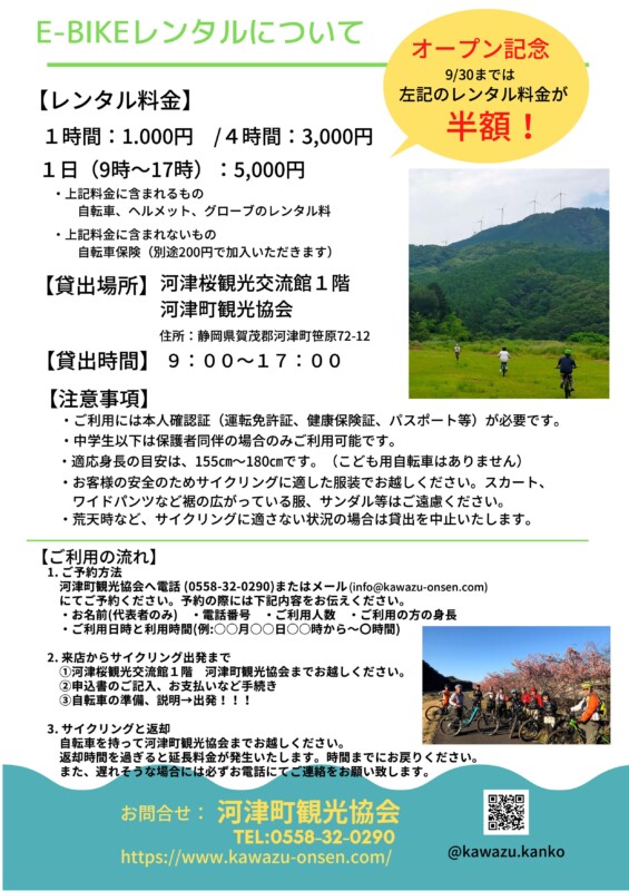 E-BIKEレンタルは河津町観光協会で実施しておりますので、ぜひご利用ください!