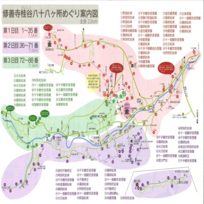 「桂谷八十八ヶ所」には四国八十八ヶ所霊場の土を移しているので、四国八十八ヶ所巡りと同じ功徳が得られると言われており、根強いファンが多いこのイベント。