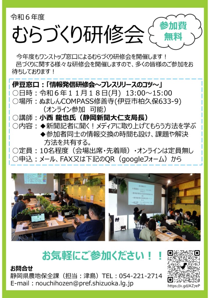 むらづくりワンストップ伊豆窓口では、むらづくりにかかせない「情報発信」の困りごとを解決する『情報発信研修会』を昨年度に引き続き開催することとなりました!