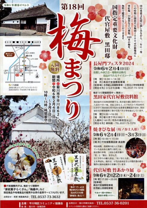 ○WEBサイト https://kikugawakanko.com/73139/2024/01/17/%e7%ac%ac18%e5%9b%9e-%e6%a2%85%e3%81%be%e3%81%a4%e3%82%8a-2024/