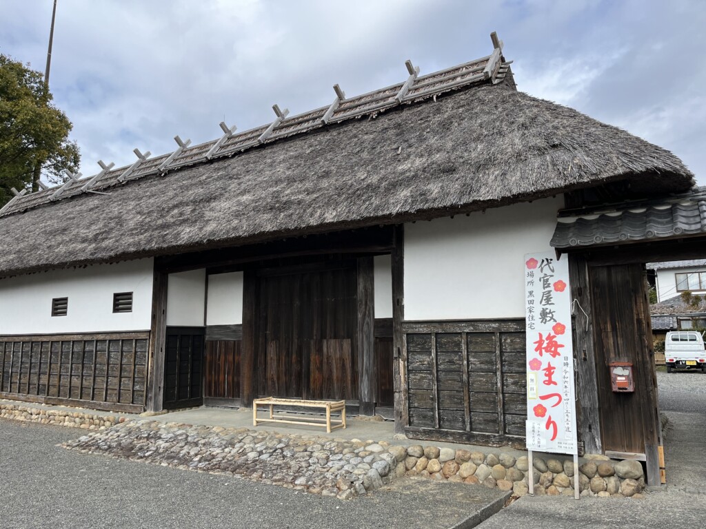 国指定重要文化財の代官屋敷黒田邸では、敷地内(2,000㎡)で寒紅梅や白加賀など13種類・160本の梅を観賞する「梅まつり」が行われています。