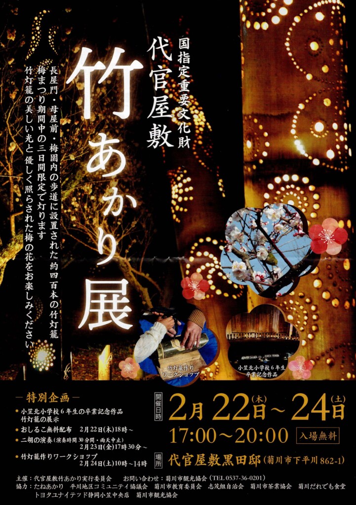 【菊川市 黒田家代官屋敷で梅まつり&竹あかり展】