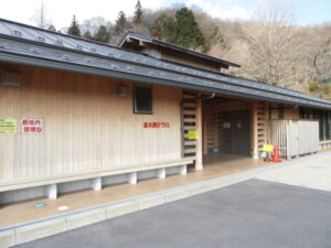 休憩所が素敵な木目の建物で出来ていて、休憩所