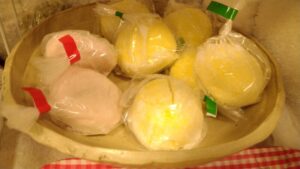 きよさわ里の駅のお母さんたちが手作りしているレモン大福。
