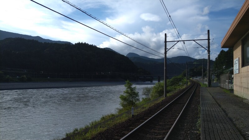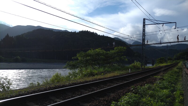 大井川鉄道の塩郷駅には、真上を吊り橋が通り