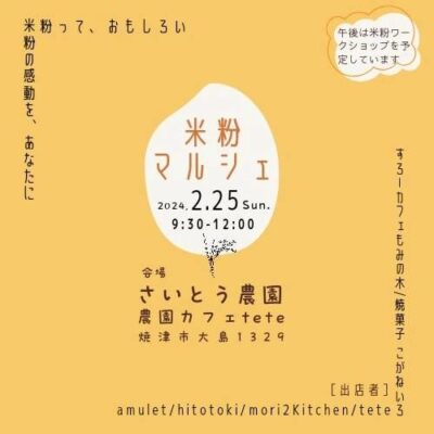 この地区で農薬や化学肥料を使わず、自然生態系を大切にお米や野菜を作るさいとう農園さんにて、米粉をもっとたくさんの方に知っていただけるようにと米粉のイベントが行われます!!