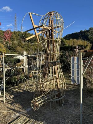 骨組みづくりからはじめて、藁を巻き付けて毎日少しずつ作っていきます。