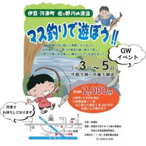 河津町の佐ヶ野川にて「マス釣りで遊ぼう!!」が開催されます!!