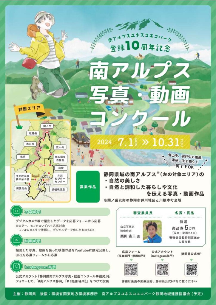 静岡県は、南アルプスがユネスコエコパークに登録されてから10周年を迎えることを記念し、南アルプスの魅力発信、来訪者の増加を目的として「南アルプス写真・動画コンクール」を開催します!