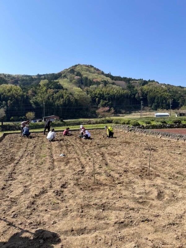 この日は、地主の方、「修善寺紙を再現する会」、伊豆市地域おこし協力隊、地元の小学生などが参加し、手分けして35本のミツマタを植えました。