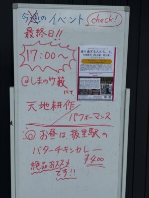 本日、天地耕作のパフォーマンスがあります!