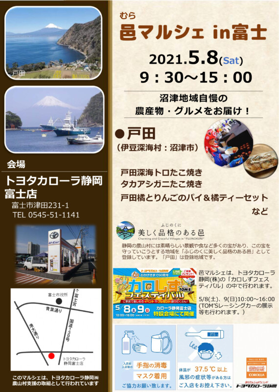 しずおか農山村サポーター「むらサポ」の企業会員である「トヨタカローラ静岡㈱」が、農山村支援の取り組みとして、邑マルシェを開催します☆