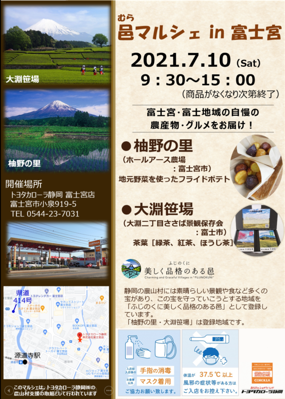 しずおか農山村サポーター「むらサポ」の企業会員である「トヨタカローラ静岡㈱」が、農山村支援の取り組みとして、邑マルシェを開催します☆