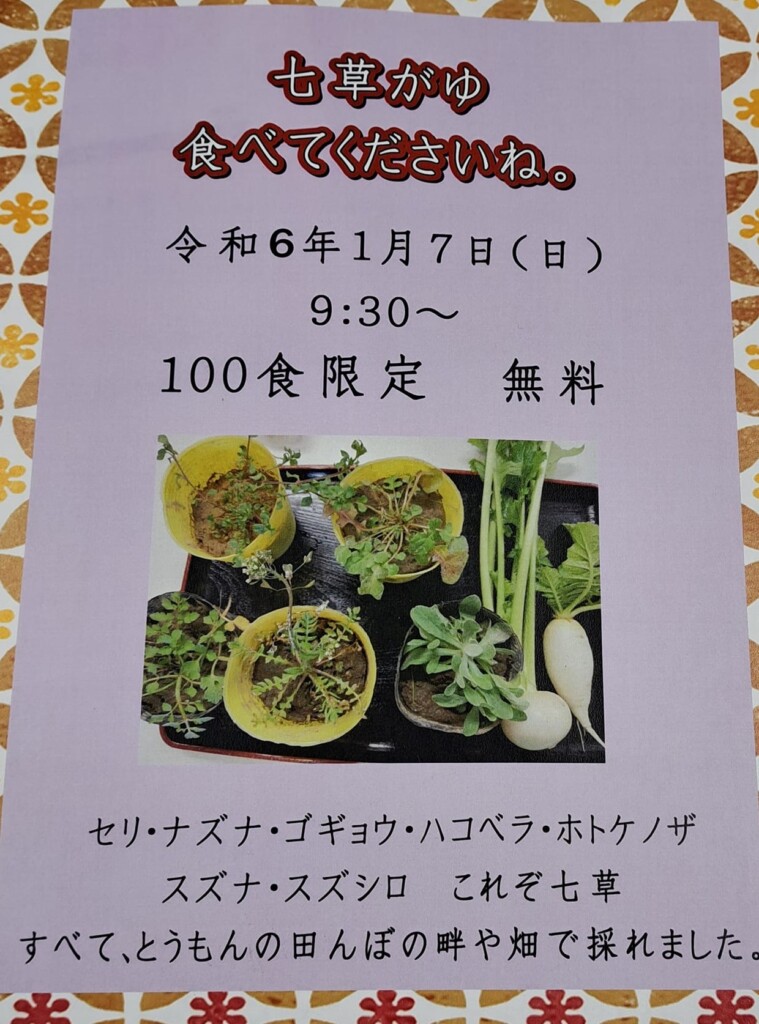 【掛川市】とうもんの「七草がゆ」食べに来てね!100食限定!!