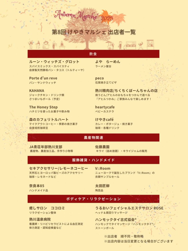 11/16(日) 第8回けやきマルシェ「Autumn marché2025」が開催されます。