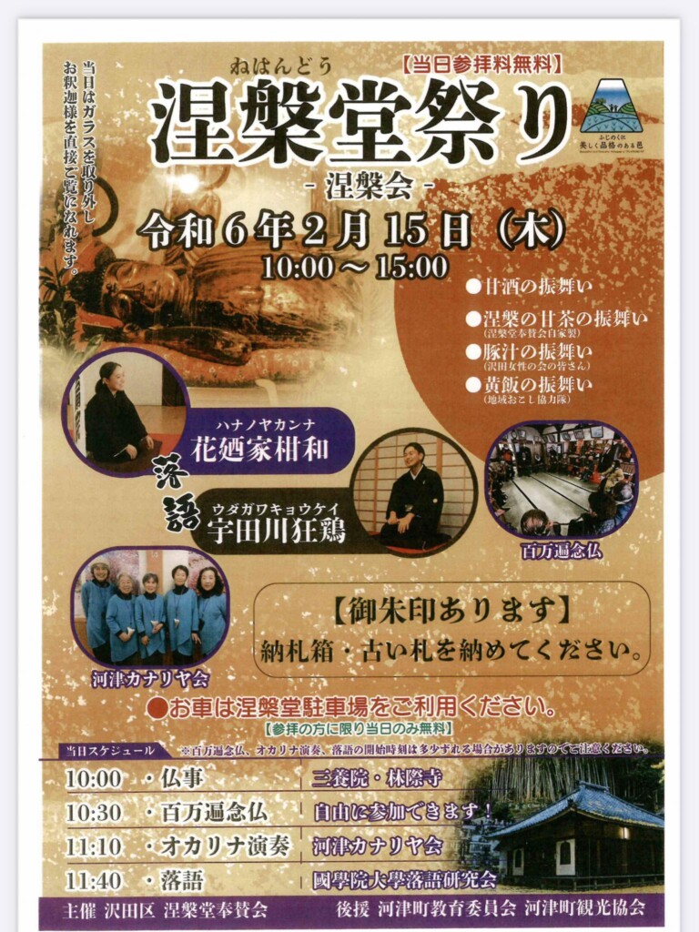河津桜が見頃を迎えた河津町で、「涅槃堂祭り」が開催されます。