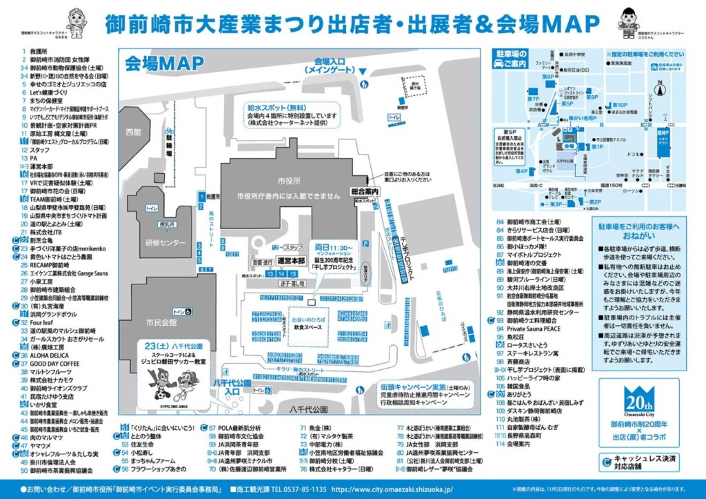 御前崎市内の企業・団体・組合・店舗・友好市町による展示・販売が行われます。約100店舗のブースが設けられ、御前崎市の産業や文化を紹介します。また、特産である干し芋をPRする「干し芋プロジェクト」による関連商品発表、販売も行います。他にも特産の水産物や地場産品を使用した料理などの販売も行われます。