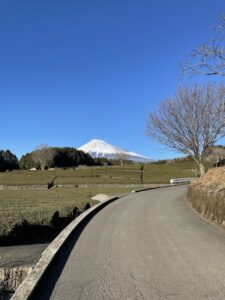 雄大な富士山を広々とした茶畑からのんびり眺め