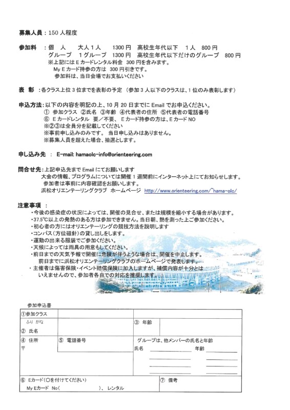 ※詳細や注意事項など、浜松オリエンテーリングクラブホームページ、チラシより必ずご確認をお願いします。