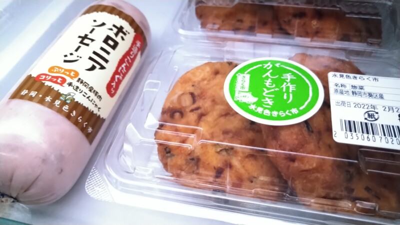 水見色は、きらく市さんの手造りこんにゃくやがんも。