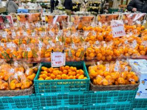 地場産品直売所へ行ってみると、まずは静岡のこの時期の名物ミカンがお出迎え。今はぽんかんが多かったです。