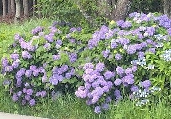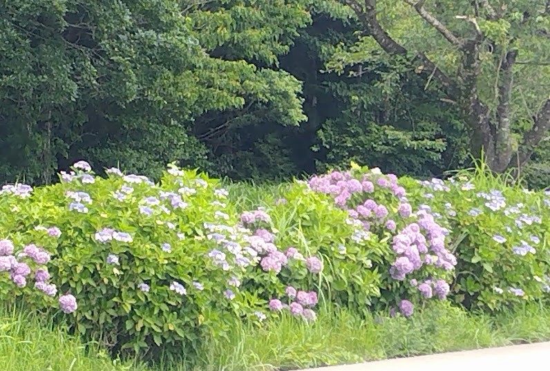 今の時期は、あじさい♪ あいにく富士山は顔を出しませんでしたが、道沿いに青や紫のあじさいが咲いていました。