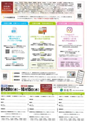 ・応募時点において、静岡県浜松市に住民票を有する浜松市民の方および浜松市内に所在地のある企業や学校等に通勤通学されている方