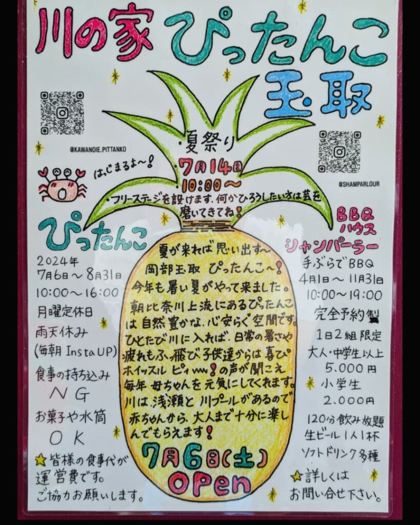 玉取川のほとりにある「川の家・ぴったんこin玉取」が今年も夏の間オープンします!