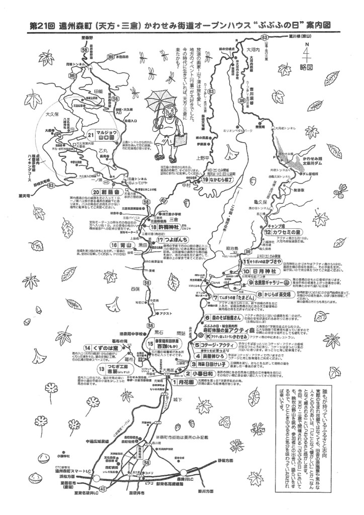 「ぷぶふの日」は、「ぷらっと来て、ぶらっと見て、ふらっと寄って、人と自然を楽しむ日」という意味を込めた、森町北部の自然豊かな天方・三倉地区で開催されるオープンハウスイベントです。