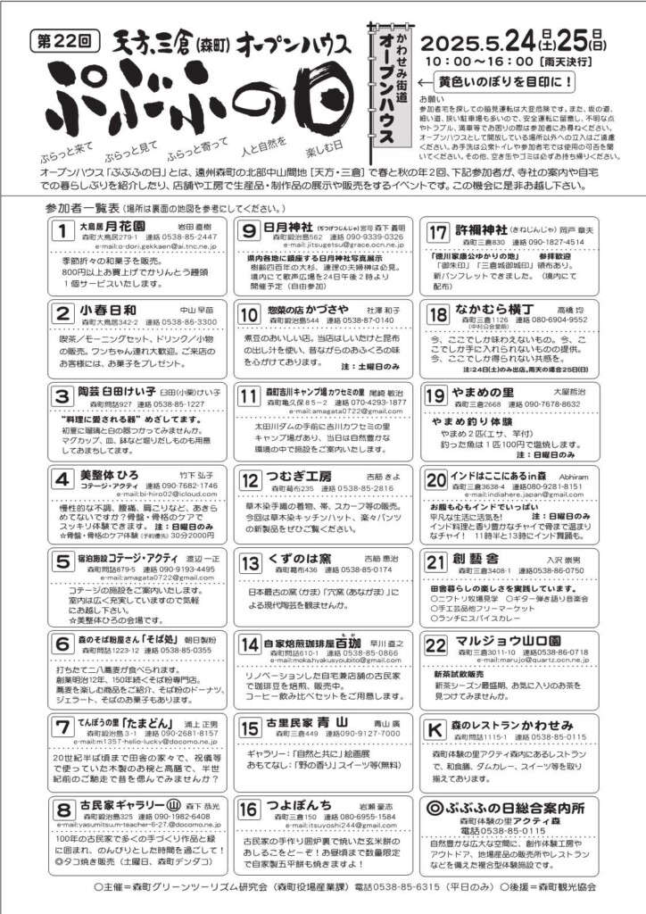 ぷぶふの日総合案内所(森町体験の里アクティ森) 電話 0538-85-0115