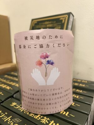 第一段階としてサジットのお茶カレー1000個販売して利益全額石川県に寄付する活動を行っています。