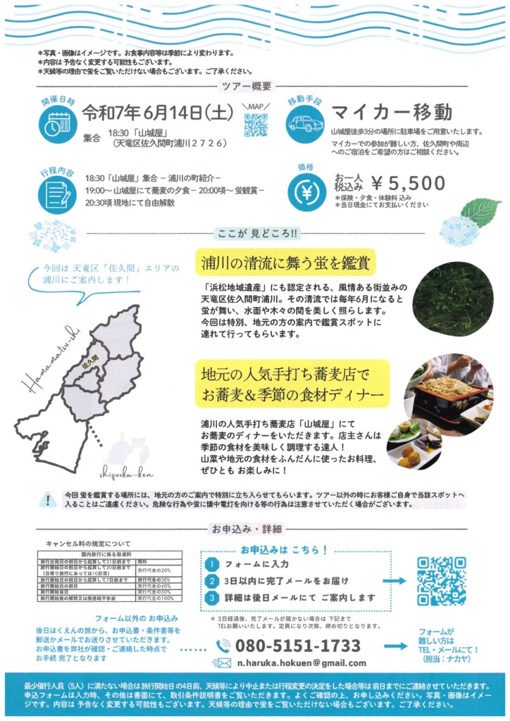 【お申込み】 こちらのフォームより→蛍舞う 佐久間のナイトツアー⭐