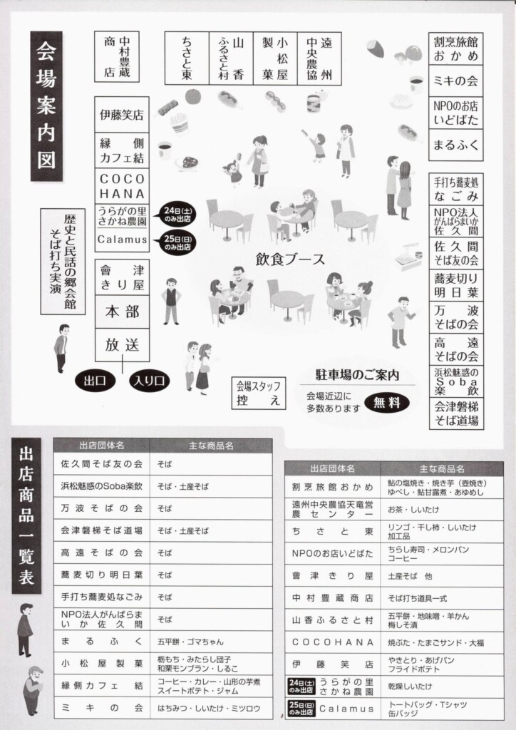 当日は、そばの味比べやそば打ち実演、物産店では、地場産品やそば打ち道具など販売もあります。そばの味比べ広場では、岐阜県、福島県、長野県、静岡県南伊豆、地元浜松からと各地のそば自慢のお店が出店します。佐久間を舞台に各地の技を食べ比べしてみませんか?ぜひ、お誘いあわせの上ご来場ください。