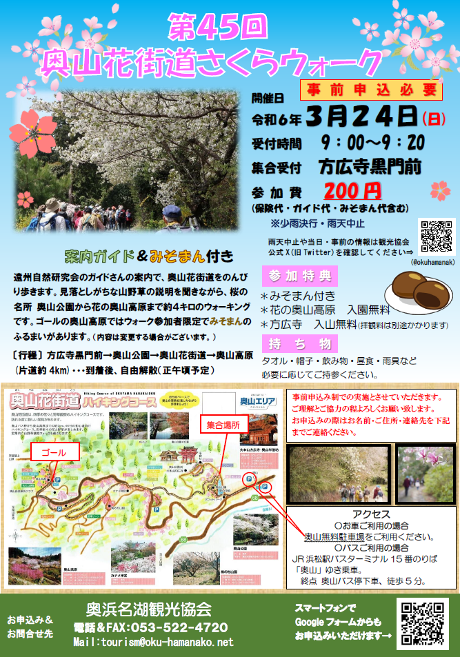 【お申込み・お問合せ】 奥浜名湖観光協会 TEL:053-522-4720