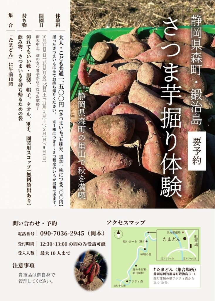 【森町】さつまいも掘り体験 参加者募集(森町天方鍛治島地区)