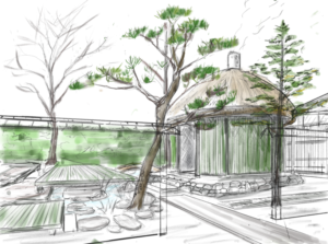 藤枝の観光課題であった宿泊施設の不足を補うとともに、駅前などの中心市街地と中山間地域の中間地点に位置する立地を活かし、地域内外の人的交流を促す場として、2023年にサウナ付き農泊施設のオープンを計画しています。