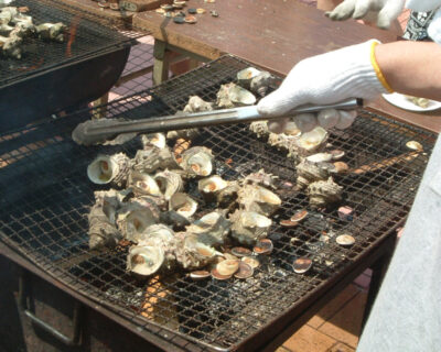 捕ったサザエ・アワビはその場で焼いて召し上がっていただきます。
