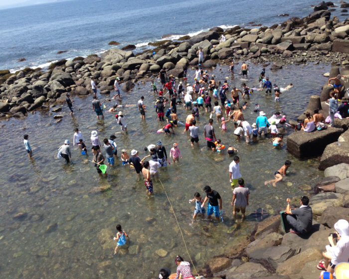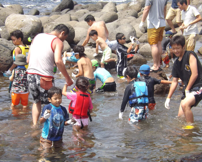 まるで天然のプールのように岩で囲まれた稲取温泉「磯 Sea Garden IKEJIRI」で、小学生以下を対象に恒例のサザエのつかみ捕りを開催します。