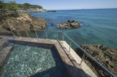 2014年10月に今井浜温泉にオープンした河津町見高地区地域振興施設です。相模灘が一望できる絶景露天風呂の温泉や自然体験、とれたての新鮮な海の幸バーベキュー、塩づくりやみかんジャムづくりなどが楽しめます。