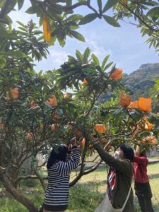 参加者の方からは、「摘果の見極めが難しかったけれど、楽しく作業ができました。」「ランチがとっても美味しかったです!!」