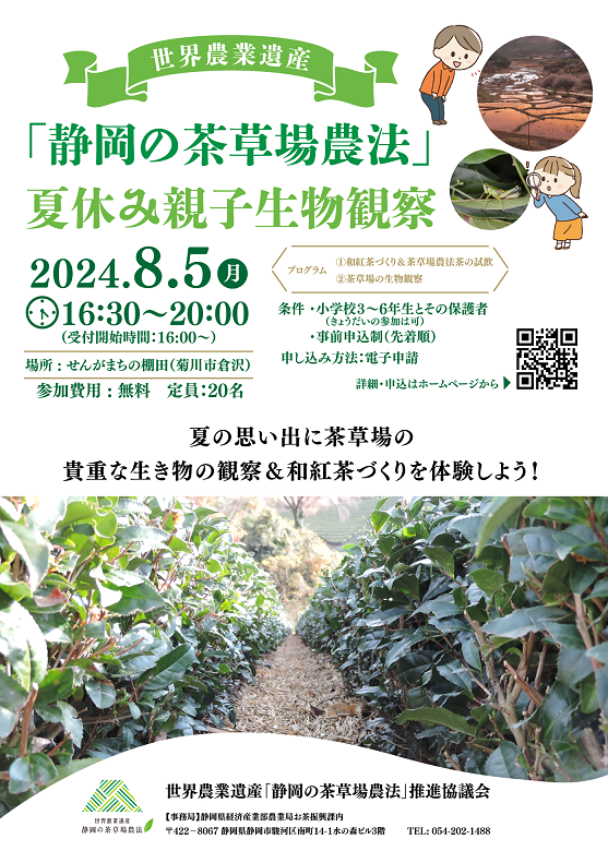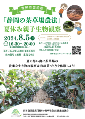 【菊川市】世界農業遺産「静岡の茶草場農法」夏休み親子生物観察を開催します!