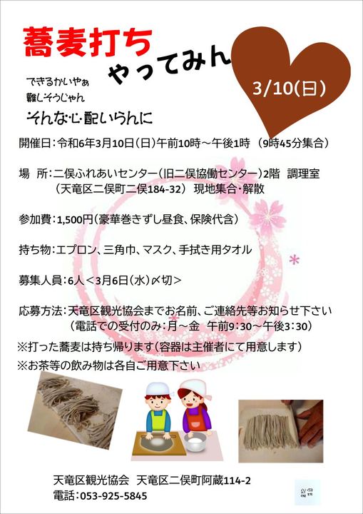 【浜松市天竜区】『そば打ち体験』参加者募集!
