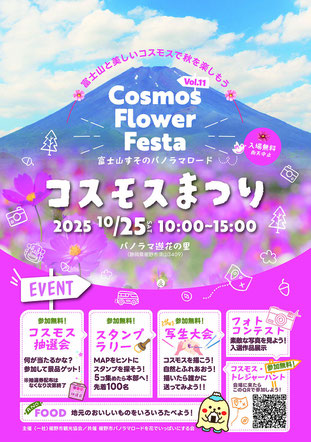 コスモスと富士山の絶景スポット“パノラマ遊花の里”で「コスモスまつり2025」が開催されます。