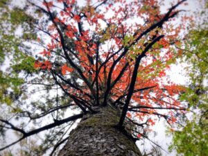 森の紅葉は、もうすでにツタウルシやモミジなど鮮やかに染まっていました。