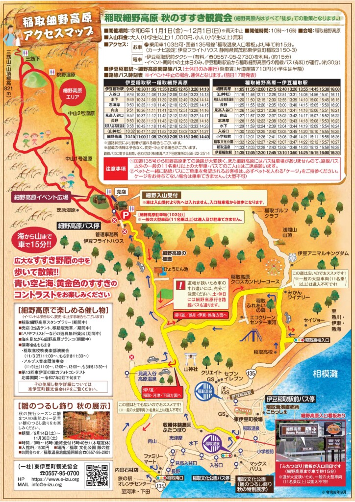 【アクセス】イベント期間中の土休日には、伊豆稲取駅より稲取細野高原行きの路線バス(片道30分/有料)あり