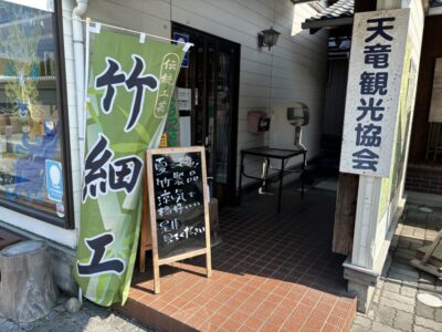 天竜阿多古の「竹の家」さんの竹細工展示販売を天竜区観光協会事務所内でしております。