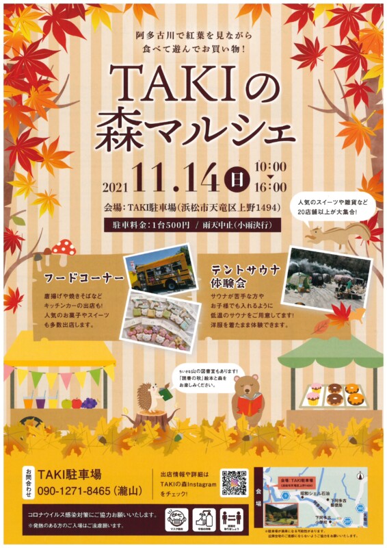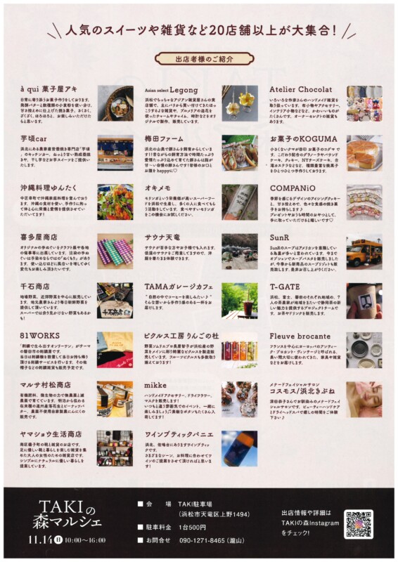 | 詳細 | 出店情報や詳細は 「TAKIの森Instagram」をチェック! @taki.nomori https://www.instagram.com/taki.nomori/ |