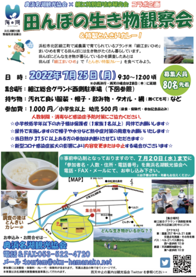 7月25日(月)に細江町中川で「田んぼの生き物観察会」を開催します!